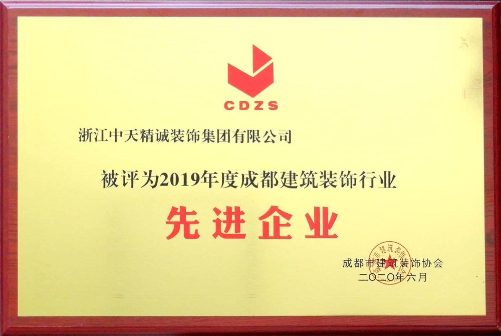近日,成都建筑裝飾行業協會對2019年度成都建筑裝飾行業先進企業和優秀個人進行表彰。中天精誠裝飾榮獲“2019年度成都建筑裝飾行業先進企業”榮譽稱號,項目經理沈濟紅、韋俊浩被授予“2019年度成都建筑裝飾行業優秀項目經理”稱號。