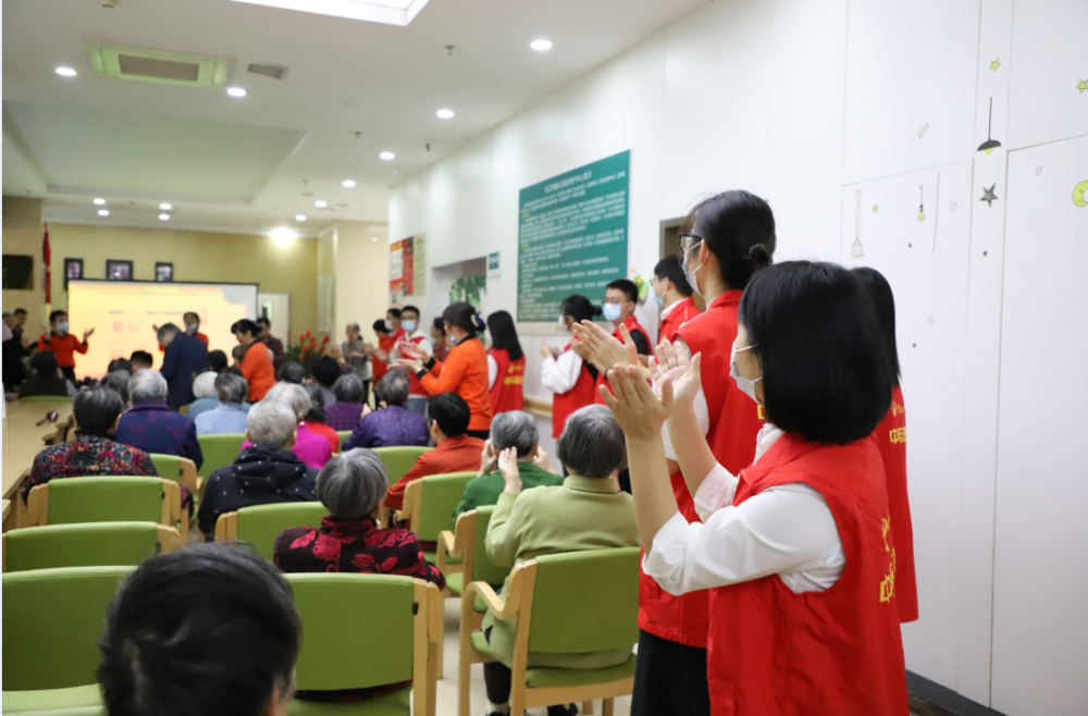 趣味運動會后,志愿者們為敬老院的老人們送上投影幕布,和老人一起跳健身操。現場氣氛熱烈,愛跳舞的沈爺爺、愛唱歌的金奶奶、和藹可親的王教授、端莊優雅的嚴奶奶……活動中,這些老人開心得像個孩子,讓志愿者們暖心又舒心。陪伴的時光總是短暫,一晃一下午的時間就過去了,志愿者們與老人依依不舍道別并相約下次再來看望他們。