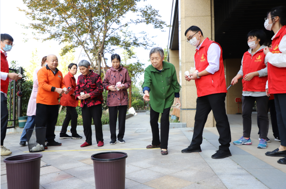 11月1日下午,中天精誠裝飾20余名志愿者們再次走進濱江綠康陽光家園,為80名阿爾茲海默癥老人精心組織了一場趣味運動會。