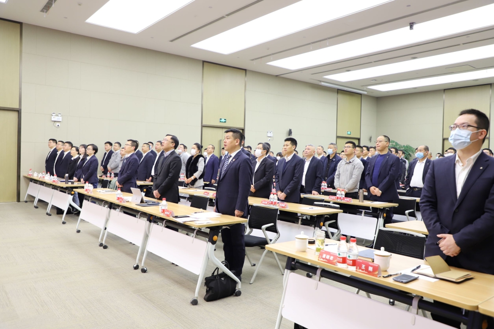 上午,會議在齊唱《中天之歌》中拉開帷幕。全體參會人員學習《八三轉型發展行動綱要》,精誠裝飾總經理斯杭東匯報2021年經濟指標、轉型升級指標完成情況及重點工作完成情況,從政治、經濟、社會、技術方面對當前市場行情進行分析,并對2022年工作目標和主要工作思路作明確部署和安排。隨后,精誠裝飾副總經理陳新德作《節后項目復工情況通報及項目管理問題復盤》專題匯報。