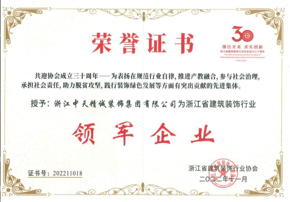 大會對在規(guī)范行業(yè)自律,推進產(chǎn)教融合,參與社會治理,承擔社會責任,助力脫貧攻堅,踐行裝飾綠色發(fā)展等方面有突出貢獻的先進集體進行了表彰。中天精誠裝飾獲“浙江省建筑裝飾行業(yè)領(lǐng)軍企業(yè)”稱號。隨后,大會選舉產(chǎn)生了協(xié)會第七屆理事會成員,中天精誠裝飾總經(jīng)理斯杭東任協(xié)會副會長。